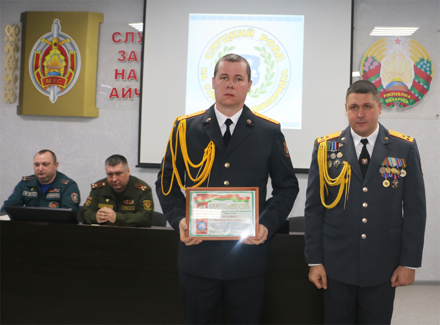 Благодарность начальника Слуцкого РОВД объявлена старшему инспектору группы ДПС отдела ГАИ Владимиру Акуловичу, инспектору уголовно-исполнительной инспекции Дмитрию Горельскому , оперуполномоченному уголовного розыска Александру Саку. РОВД отмечены также ветераны слуцкой милиции Николай Навицкий, Валерий Антипенко, Анатолий Гаргун, Юрий Добролет, Владимир Гусак, Иван Бугаревич.