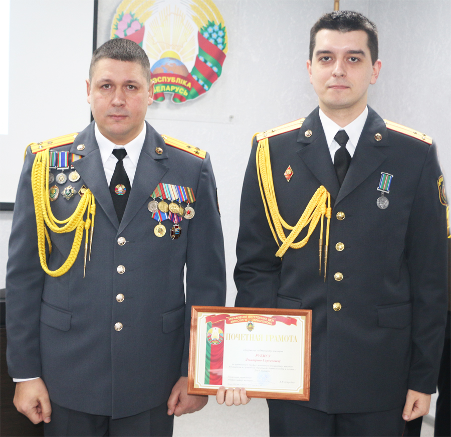 Ряд сотрудников Слуцкого РОВД за успехи в работе отмечены наградами, в том числе Благодарственными письмами Слуцкого районного Совета депутатов – старший оперуполномоченный группы противодействия киберпреступности Артём Филипович и оперуполномоченный отделения по борьбе с экономическими преступлениями Сергей Гапеев Грамоты УВД Миноблисполкома вручены участковому инспектору милиции Сергею Рубису, командиру отделения конвойного подразделения изолятора временного содержания Кириллу Тюникову. Благодарностями УВД Миноблисполкома отмечены начальник изолятора временного содержания Вадим Кисель, участковый инспектор милиции Константин Пухляк.