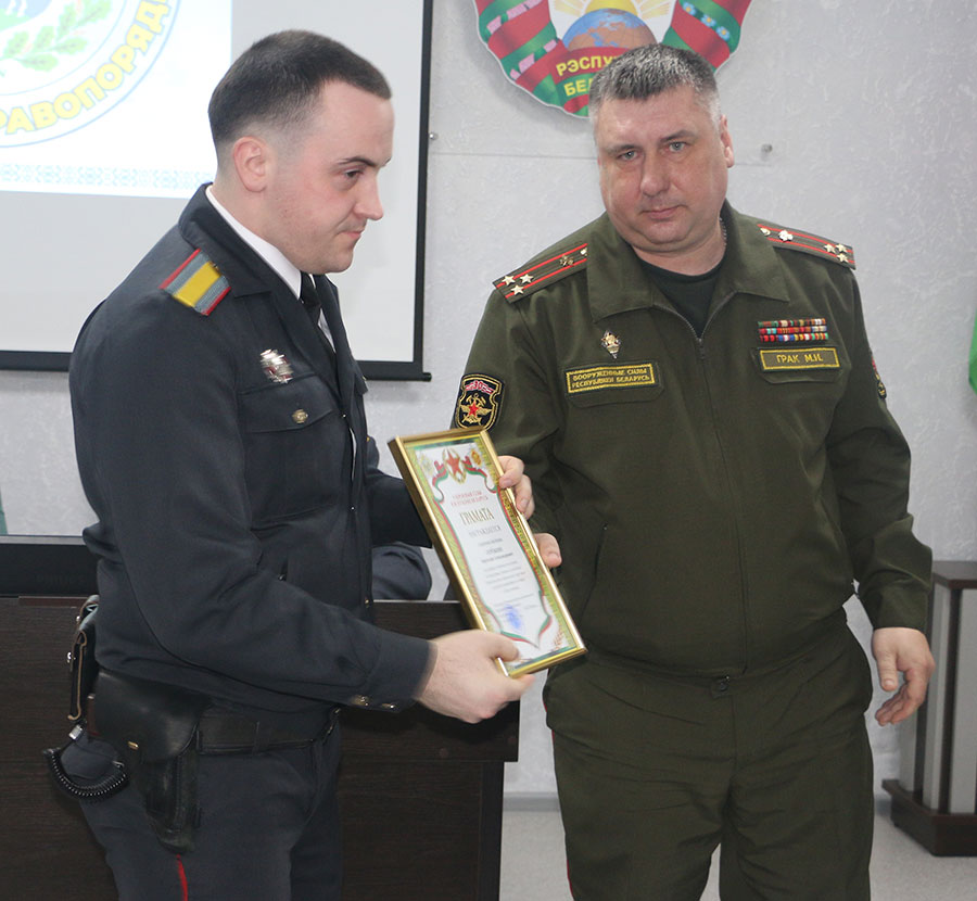 С поздравлениями, добрыми пожеланиями к присутствующим также обратились заместитель командира 30-й отдельной Краснознаменной железнодорожной бригады Максим Грак, начальник Слуцкого РОЧС Виталий Ильючик, руководитель отдела Слуцко-Солигорской епархии по взаимодействию с вооруженными силами и правоохранительными органами отец Александр.