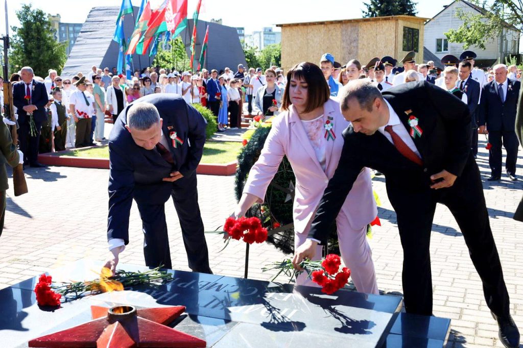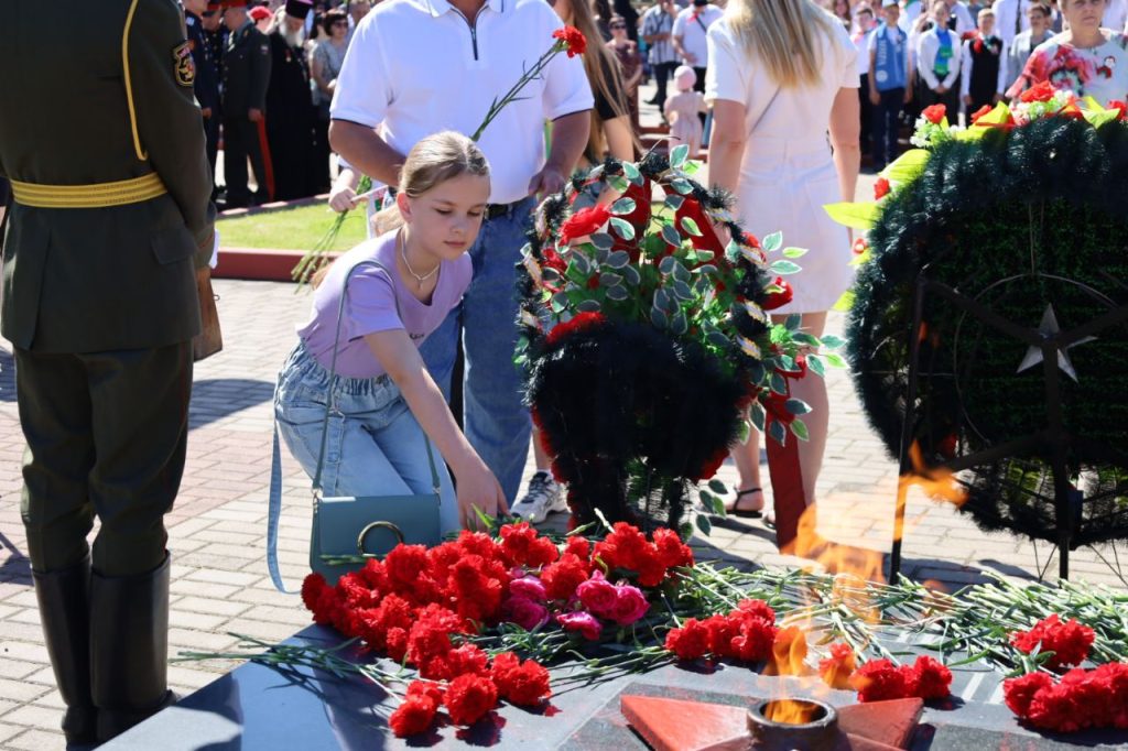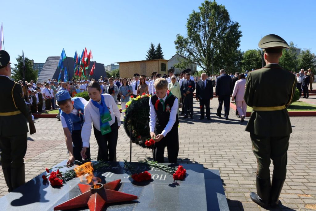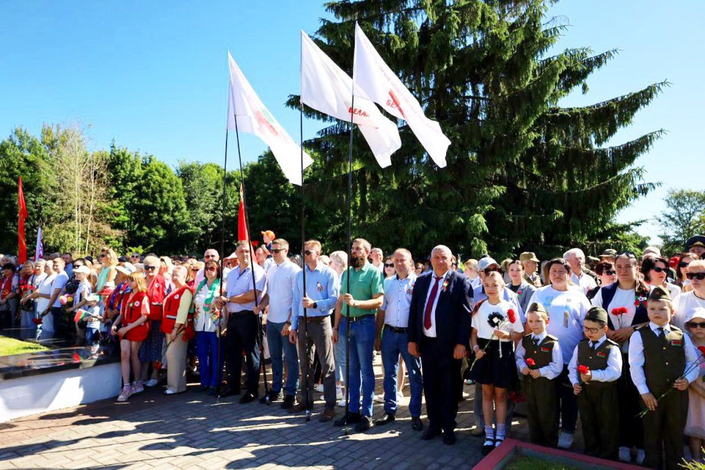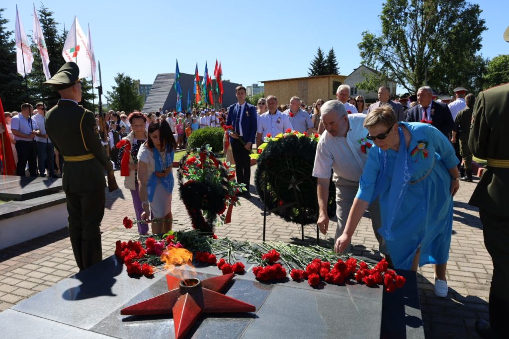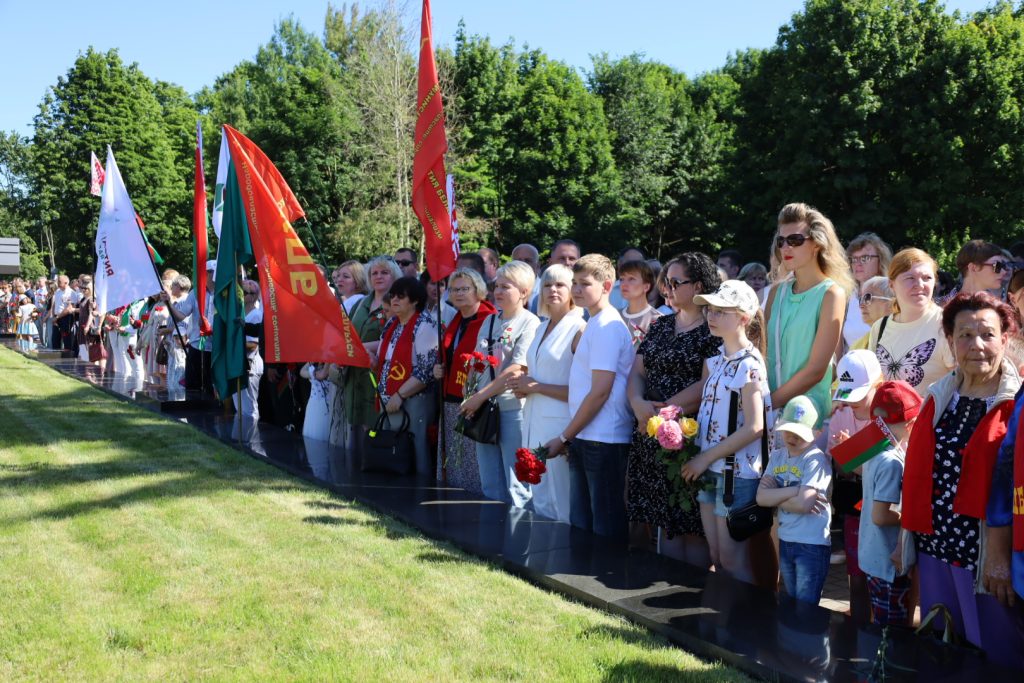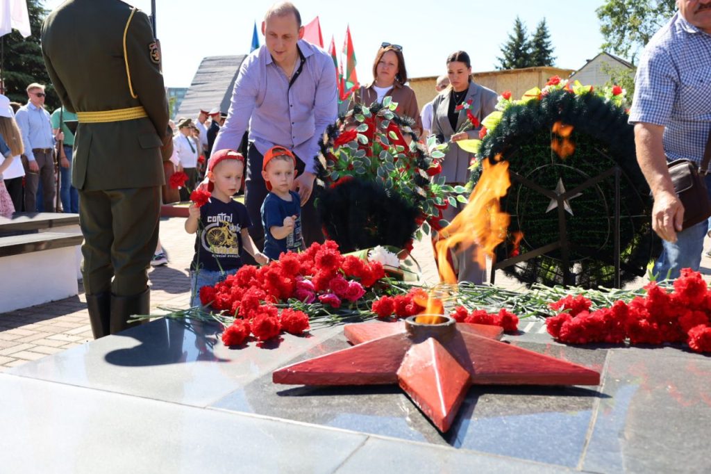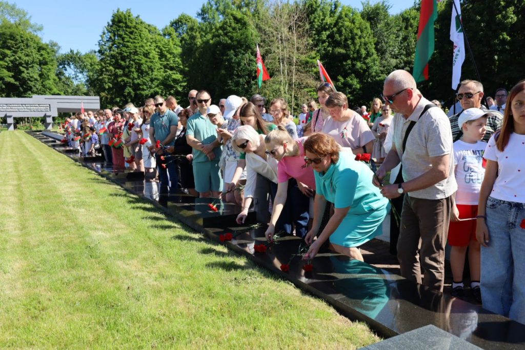 – Становление независимой Беларуси не было простым. Веками шла борьба за землю, культуру и веру. Как никакой другой народ, мы знаем цену свободы: каждый третий отдал свою жизнь, чтобы мы с вами могли жить под мирным небом. Сегодня мы должны неизменно равняться на поколение победителей – мужественное и мудрое, на его умение стойко переносить невзгоды, всегда быть уверенными в себе, искренне и беззаветно любить Родину, – сказал Владимир Гога. – На этом памятном месте мы преклоняемся перед их стойкостью, самопожертвованием и самоотверженностью. Склоняем головы, помня погибших, скорбя о женщинах, стариках и детях, чьи жизни забрала война. Мы всегда будем беречь священную правду о войне, не допустим забвения героев. Нас с вами объединяют общая память о поколении победителей и ответственность за настоящее и будущее Родины.