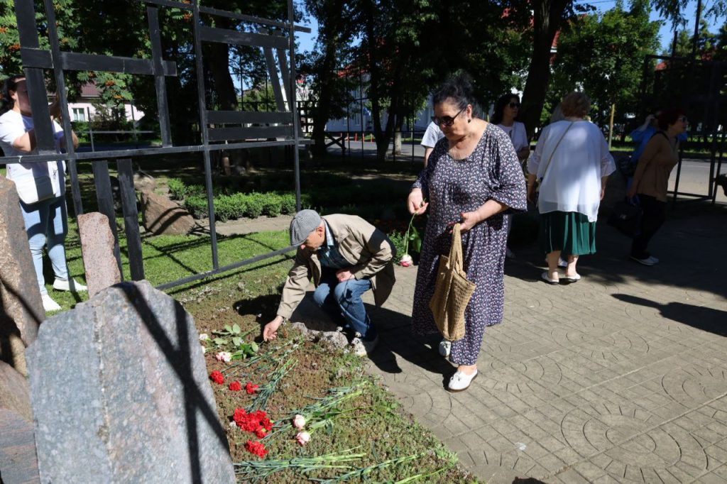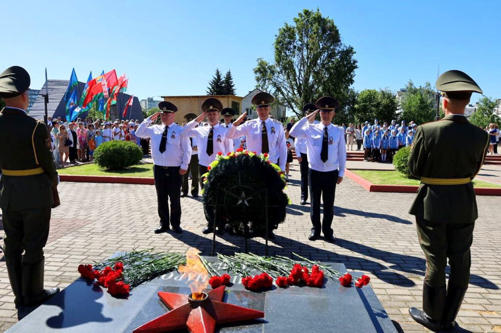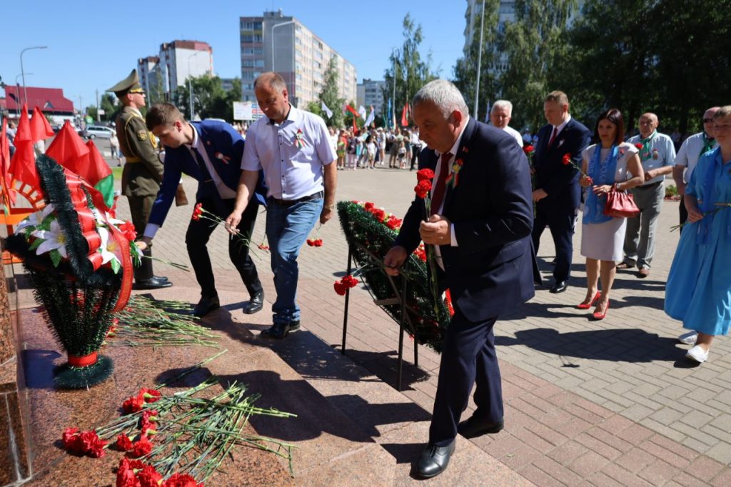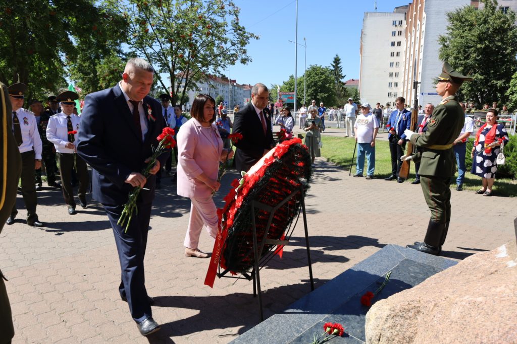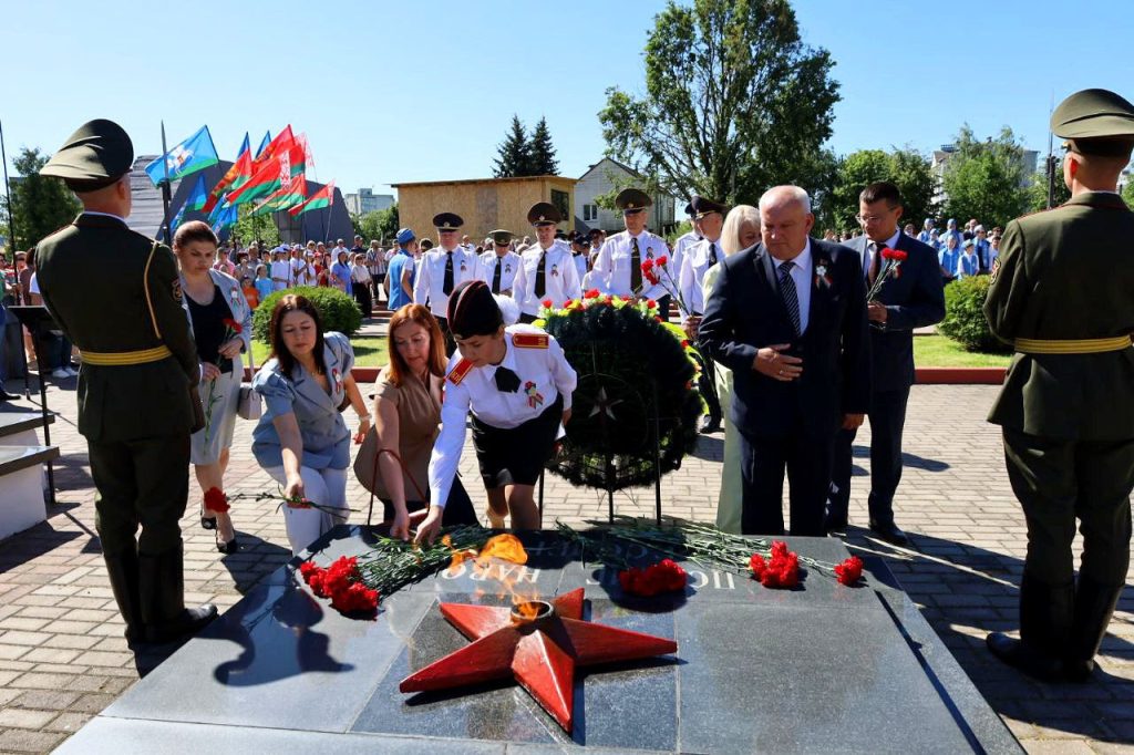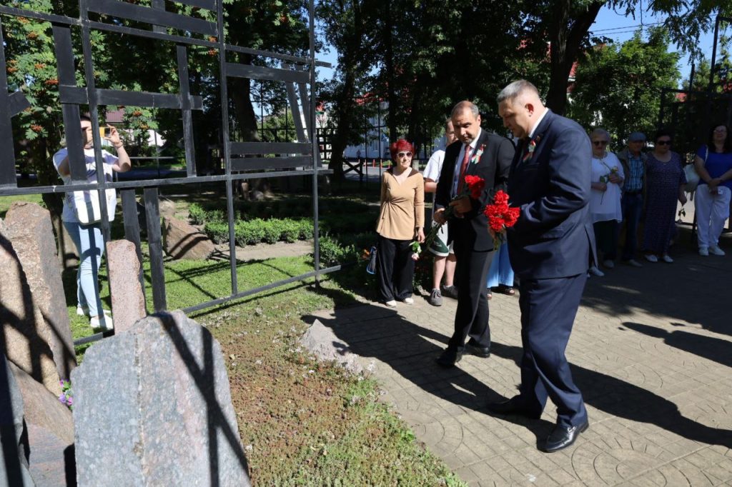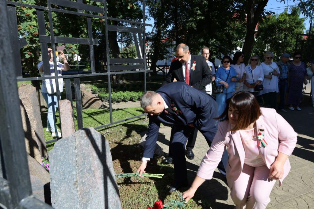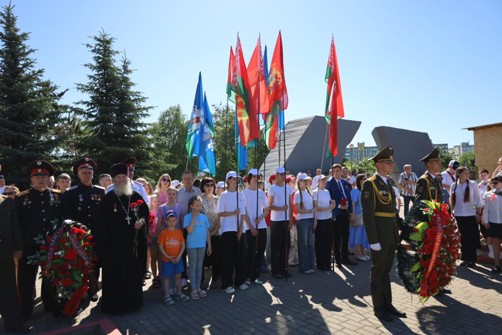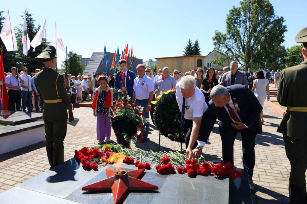 – Становление независимой Беларуси не было простым. Веками шла борьба за землю, культуру и веру. Как никакой другой народ, мы знаем цену свободы: каждый третий отдал свою жизнь, чтобы мы с вами могли жить под мирным небом. Сегодня мы должны неизменно равняться на поколение победителей – мужественное и мудрое, на его умение стойко переносить невзгоды, всегда быть уверенными в себе, искренне и беззаветно любить Родину, – сказал Владимир Гога. – На этом памятном месте мы преклоняемся перед их стойкостью, самопожертвованием и самоотверженностью. Склоняем головы, помня погибших, скорбя о женщинах, стариках и детях, чьи жизни забрала война. Мы всегда будем беречь священную правду о войне, не допустим забвения героев. Нас с вами объединяют общая память о поколении победителей и ответственность за настоящее и будущее Родины.