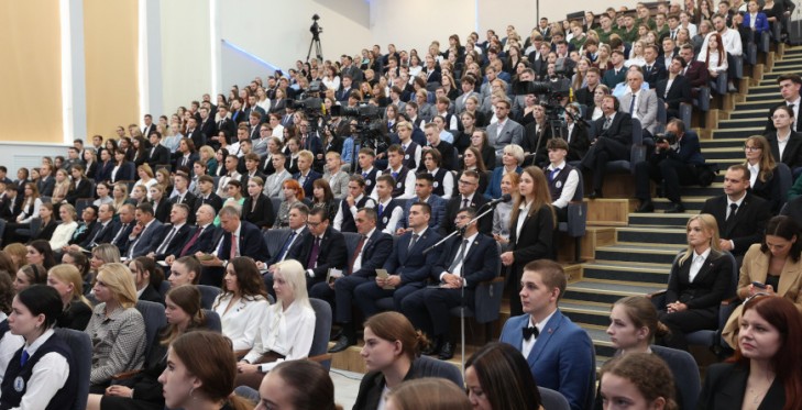 Учащихся, педагогов, родителей учеников школы поздравил председатель Слуцкого райисполкома Владимир Гога. Пусть новый учебный год будет успешным, интересным, богатым на добрые события, подчеркнул Владимир Леонидович. Руководитель Слутчины пожелал  первоклассникам быть любознательными и дисциплинированными, а учащимся выпускного класса – усердно учиться, чтобы в будущем реализовать свои мечты, получить профессии. Обращаясь к юным слутчанам, Владимир Леонидович отметил, что очень важно быть настоящими гражданами своей страны.  Владимир Гога пожелал родителям учащихся  мудрости,  активного участия в воспитании, судьбах своих детей.