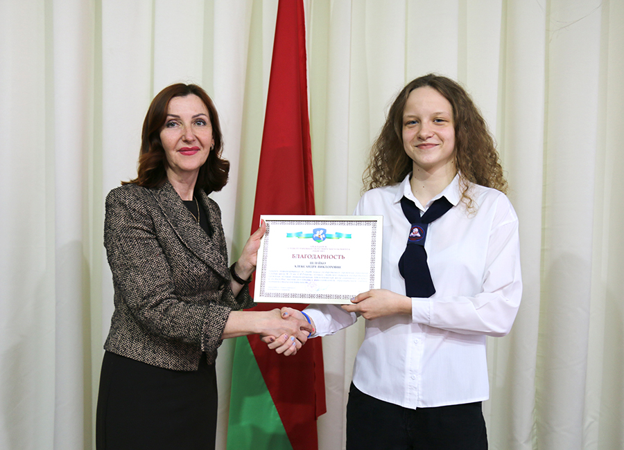 Заслуженную награду в торжественной обстановке Александре вручила заместитель председателя Слуцкого райисполкома Наталья Чернушевич. Наталья Викентьевна пожелала юной спортсменке новых побед, достижений, отличной учебы.
