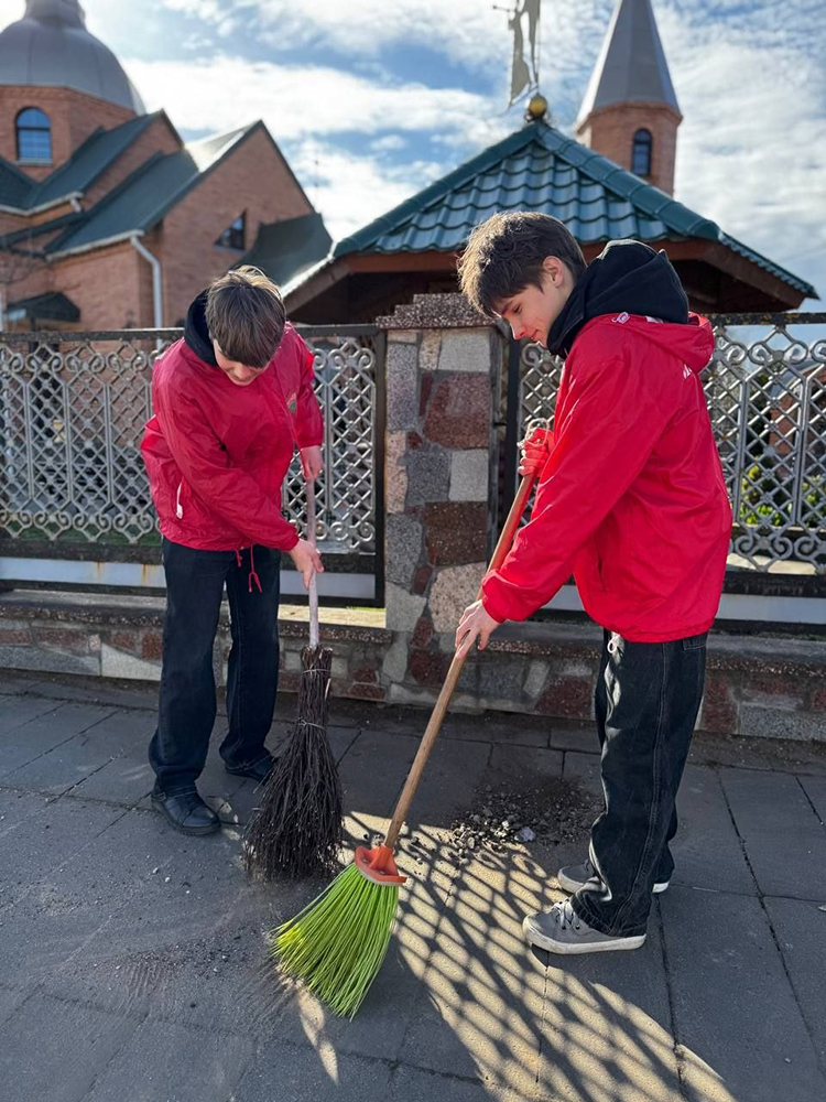 Учащиеся Лучниковской средней школы ранее уже наводили порядок на территории храма. В этом году ребята также решили помочь в благоустройстве. Фронт работ был немалый: школьники наводили порядок внутри храма, сгребали сухую растительность, подметали дорожки, благоустраивали клумбы и другие зеленые насаждения.