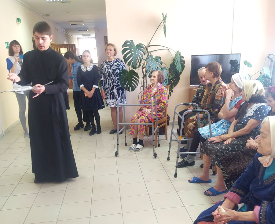 В отделении для круглосуточного пребывания граждан пожилого возраста и инвалидов Слуцкого территориального центра социального обслуживания населения сегодня были гости – ученики 7 Б класса средней школы №8 (классный руководитель Инесса Романюк) и представители Свято-Михайловской церкви. Ребята подготовили для находящихся там бабушек и дедушек небольшой концерт.