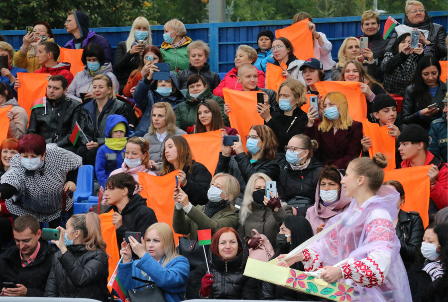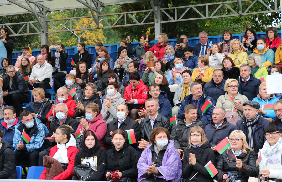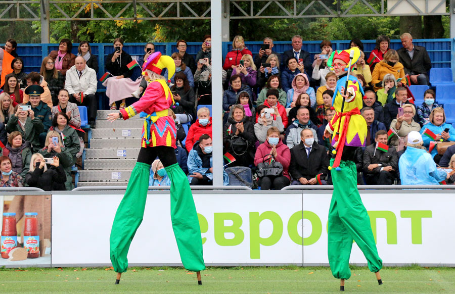 Мы разам спявалі Дзяржаўны гімн нашай роднай Беларусі, разам з удзельнікамі відовішчнага сцэнічнага дзейства пераносіліся да лёсавызначальных, важных старонак гісторыі і кірункаў жыцця краіны, роднага краю.