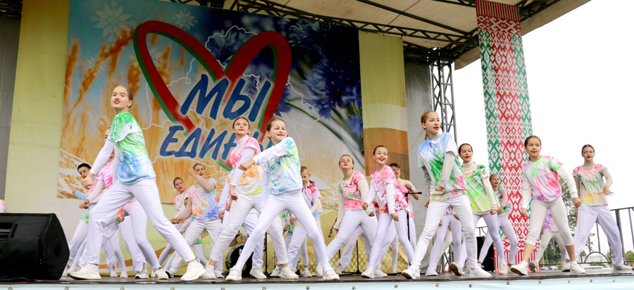 Яркае, арыгінальнае, кранальнае, музычнае, песеннае, разнастайнае… Канцэртнае дзейства свята было падзелена на тэматычныя часткі, якія гарманічна складваліся ў адзінае цэлае, былі прасякнуты агульнай ідэяй – мы разам, усе мы – частка вялікай еднасці – беларускі народ. У гэтай вялікай канцэртнай праграме былі задзейнічаны творчыя калектывы, установы адукацыі, прадпрыемствы, арганізацыі Случчыны, і дарослыя, і маленькія случчане. Сапраўды, атрымалася вельмі прыгожа, маштабна, пранікнёна, эмацыянальна, што немагчыма было стрымаць слёз.
