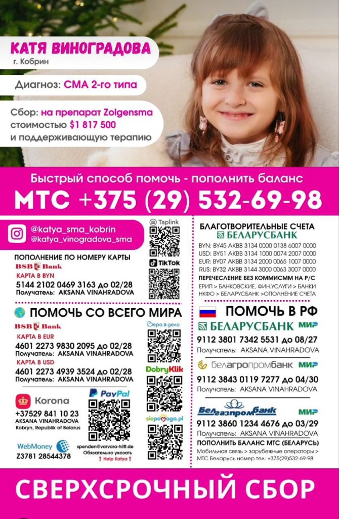 Остановить прогрессирующую болезнь может препарат Zolgensma, который спасает жизнь двигательных нейронов и позволяет детям расти и развиваться. К сожалению, стоимость препарата составляет 1 817 500 долларов. Однако Zolgensma вводится детям весом до 21 килограмма. Сейчас вес Катюши приближается к отметке в 18 килограммов.