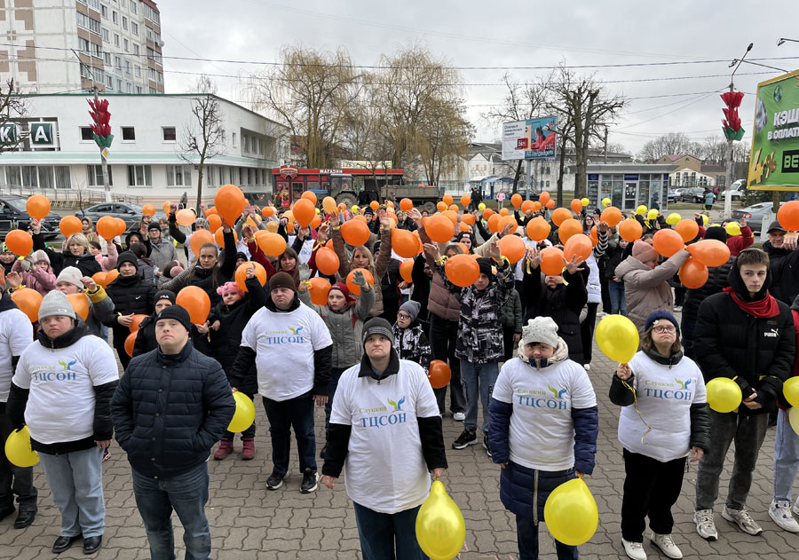 Более 300 участников с желтыми и оранжевыми шарами пришли к кинотеатру «Беларусь», чтобы продемонстрировать, что мы разные, но мы равные, что поддерживая друг друга, люди делают мир добрее, а значит, счастливее.