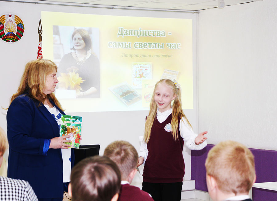 Пачаліся яны літаратурнай вандроўкай «Дзяцінства – самы светлы час» па творах Іны Фраловай. Член грамадскай арганізацыі «Саюз пісьменнікаў Беларусі» і супрацоўнік рэдакцыйна-выдавецкай сістэмы ўстановы «Выдавецкі дом «Звязда» Іна Мікалаеўна пазнаёміла школьнікаў са сваімі творамі і новай кніжкай «Залатыя рыбы». Прапанавала ім паразважаць, наколькі гэта цудоўна – удзельнічаць у працэсе выхаду ў свет кнігі, звязаць сваё жыццё з такой справай.
