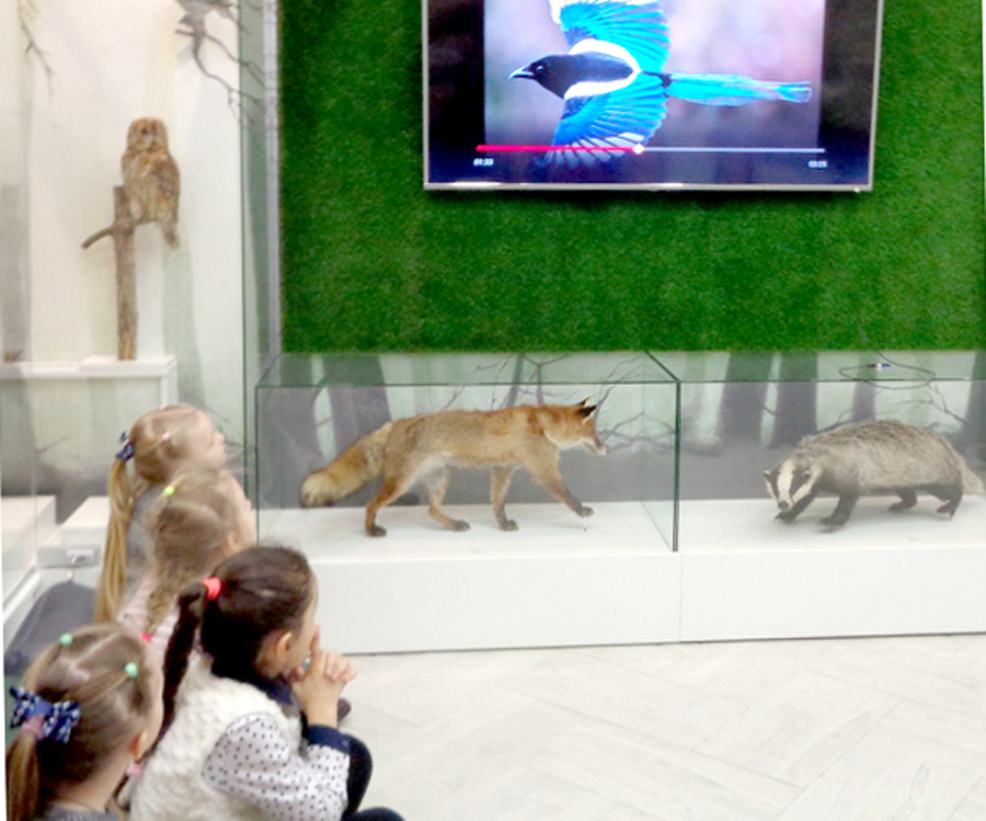 Гостеприимно встретили сотрудники музея своих посетителей. Особый интерес у ребят вызвал инфокиоск с информацией о выставочных залах и экспонатах. С нескрываемым  любопытством  рассматривали  первоклашки экспонаты в зале «Природа края». Усевшись на мягкие подушки на полу, они с удовольствием  отгадали загадки, просмотрели видеоматериалы об особенностях жизни диких животных родного края. С помощью определителей смогли точно назвать виды животных – экспонатов музея за стеклом.