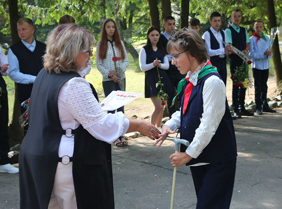 – Искренне поздравляю вас с Днем знаний. Лето пробежало очень быстро, и сегодня вы стали на год старше, у вас начинается новый учебный год, – обратилась к учащимся Наталья Овсянникова. – Я всегда очень люблю бывать именно в деревенских школах, они по-домашнему уютные, семейные. И для меня, как выпускницы сельской школы, очень важно, чтобы она жила. Поэтому я слегка огорчилась, что в новом учебном году здесь нет первого класса. Но радует, что в вашем детском саду есть детки, которые сядут за парты в следующем году. Мне бы очень хотелось, чтобы эти дети дошли до 11 класса. Школа – это общий дом, где трудятся педагоги, учащиеся и родители. Очень важно, чтобы совместными усилиями мы воспитали патриотов своей Родины, достойных граждан нашей любимой синеокой Беларуси. Здоровья вам, мира, добра. Чтобы все, что вы задумали, – всегда осуществлялось. Нашим дорогим выпускникам хочу пожелать успехов и сказать так: «Не пакідайце сваю вёску! Нездарма кажуць, дзе нарадзіўся, там і прыгадзіўся! Хай вам шчасціць!».