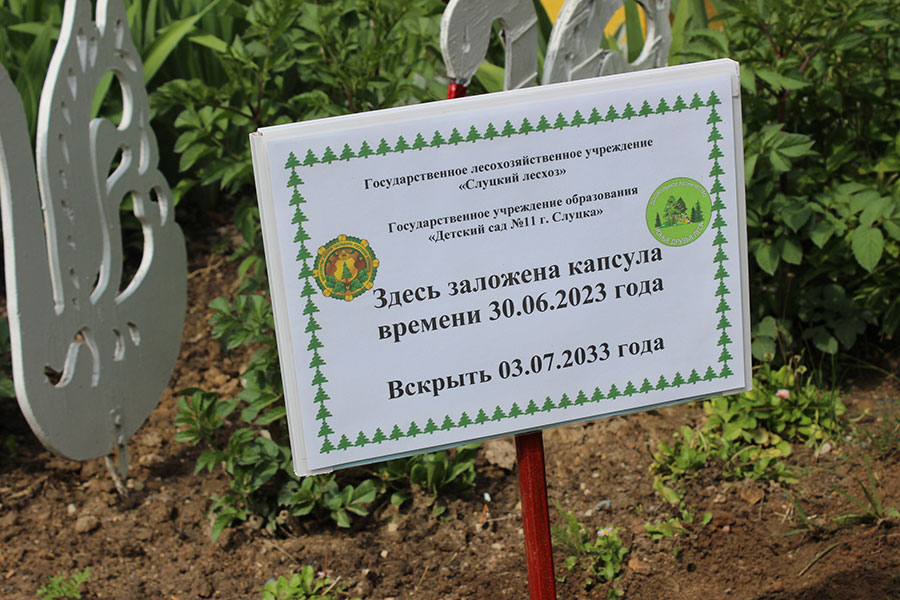 Воспитанники детского сада и гости праздника написали свои пожелания и напутствия будущим поколениям, и заложили символическую капсулу времени, которая будет вскрыта 3 июля 2033 года.