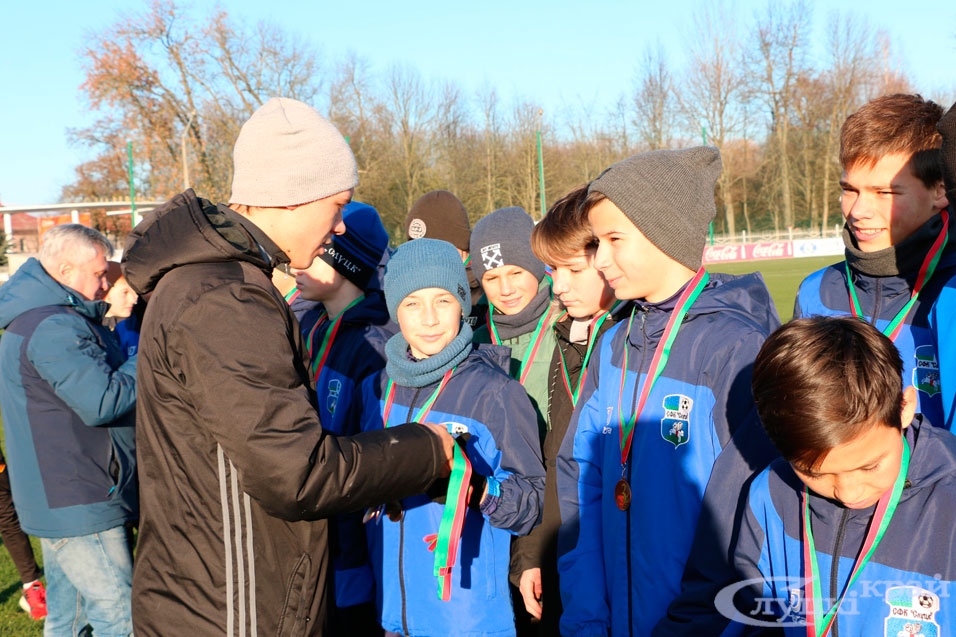 Дырэктар ДЮСШ «Слуцк» А.І. Шаўцоў уручае кубак капітану каманды «Слуцк»-2006 Івану Дзядзюлю