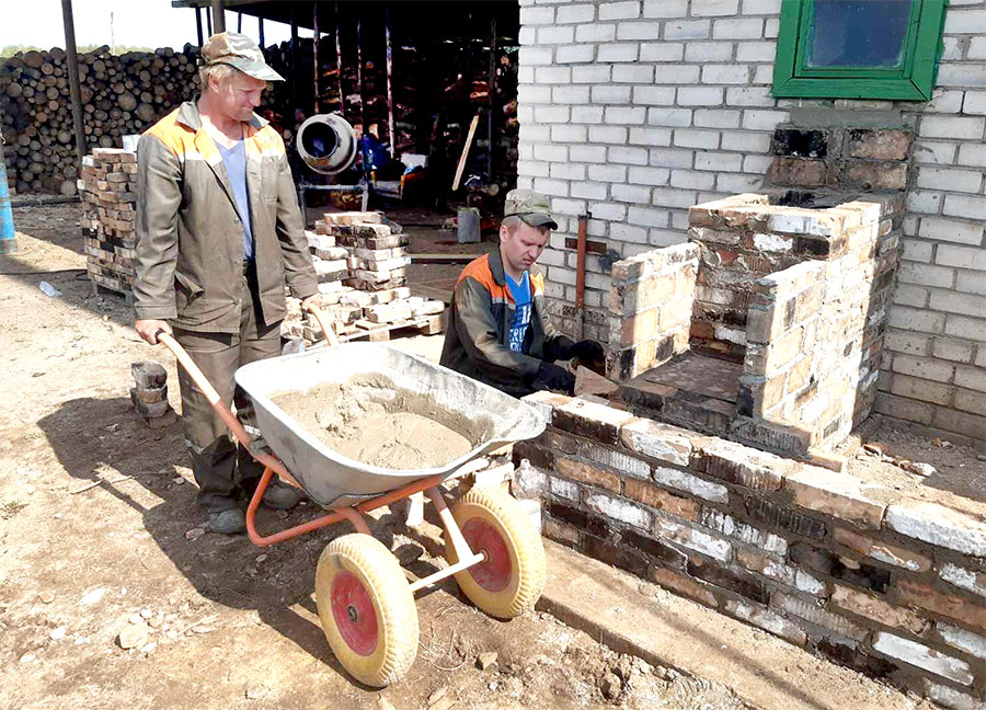 Рамонт кацельні ў вёсцы Маяк, працавалі слесары-рамонтнікі Максім Васільевіч Валадковіч і Міхаіл Васільевіч Гардзейчык.
