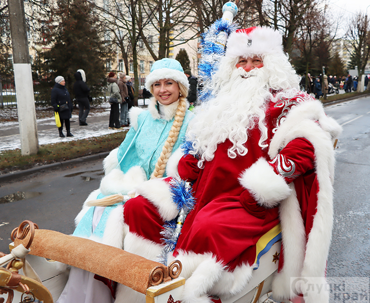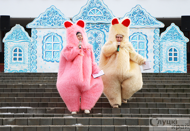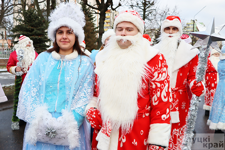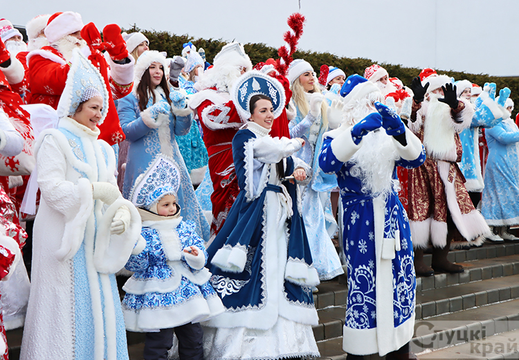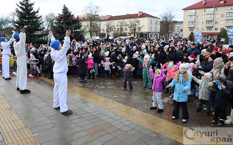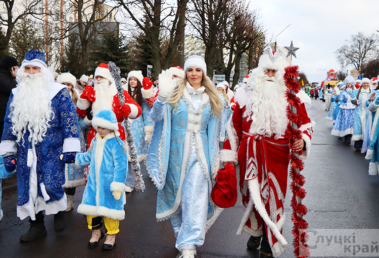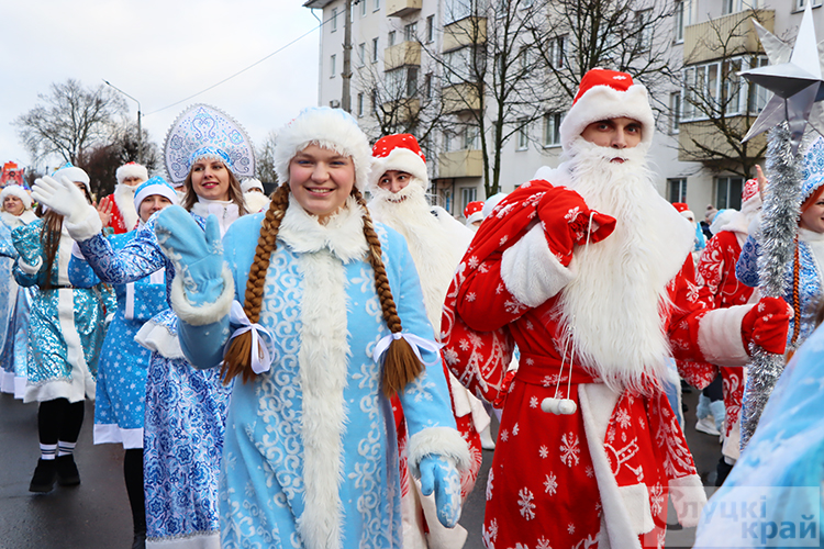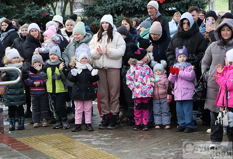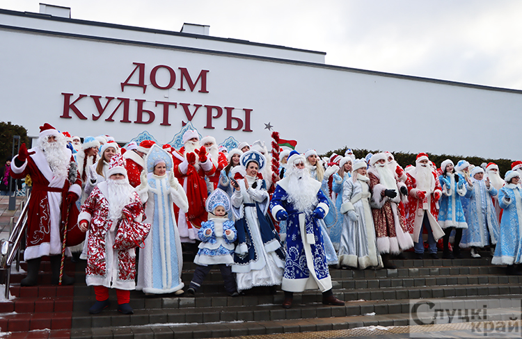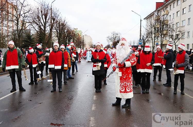 И вот, под звуки образцового духового оркестра Слуцкой детской школы искусств, колонна двинулась навстречу празднику. Дедушки Морозы и Снегурочки, нарядные елочки, герои мультфильмов и другие персонажи приветствовали слутчан и гостей города.