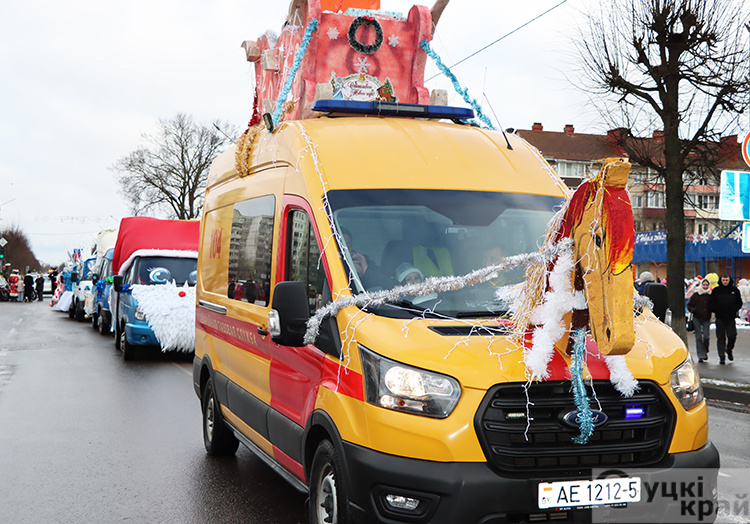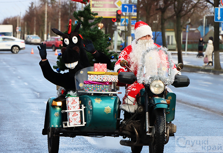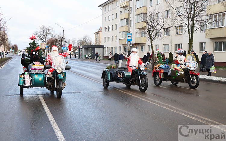 По традиции не обошлось и без ярких авто перерабатывающих предприятий, организаций, учреждений Слутчины, саней с Дедушкой Морозом и Снегурочкой.