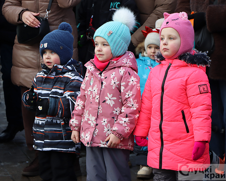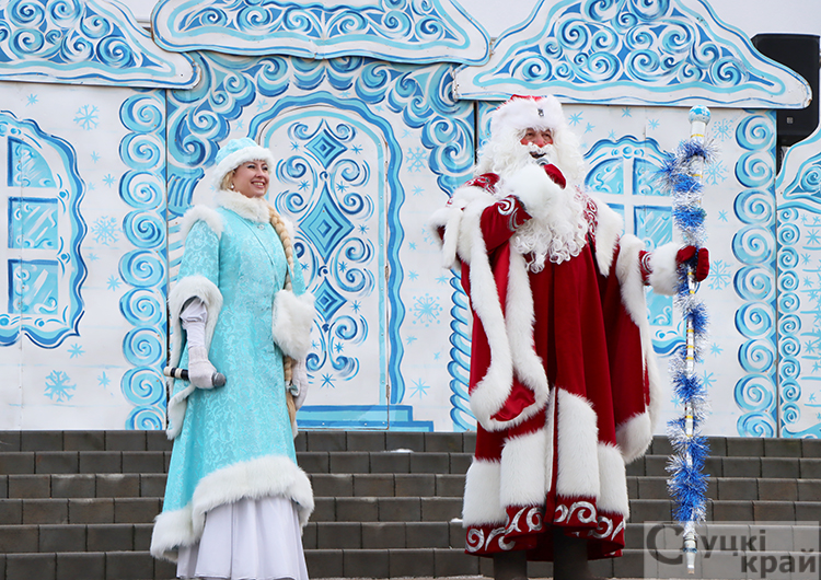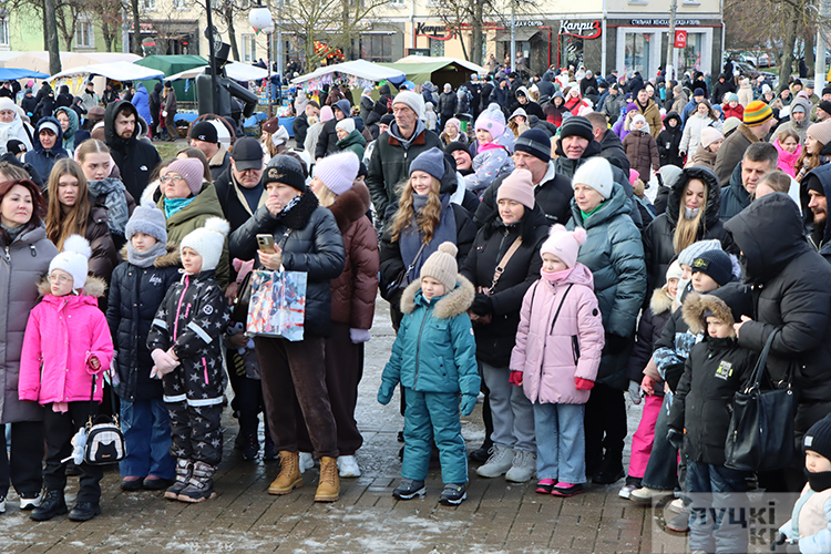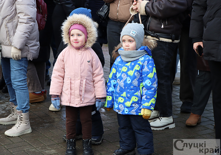 Еще до начала праздничного шествия собралось немало зрителей, которые с восторгом ожидали начала действия. Малыши и юные слутчане рассказывали Дедушкам Морозам подготовленные праздничные стихи, взамен получали сладкое угощение.