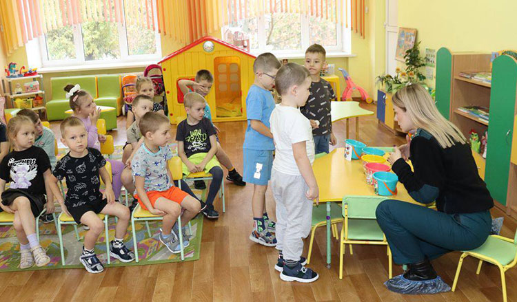 Один из дней воспитанников детского сада №19 города Слуцка начался со встречи со страшим инспектором сектора пропаганды и взаимодействия с общественностью Слуцкого районного отдела по чрезвычайным ситуациям Мариной Лесниковой.