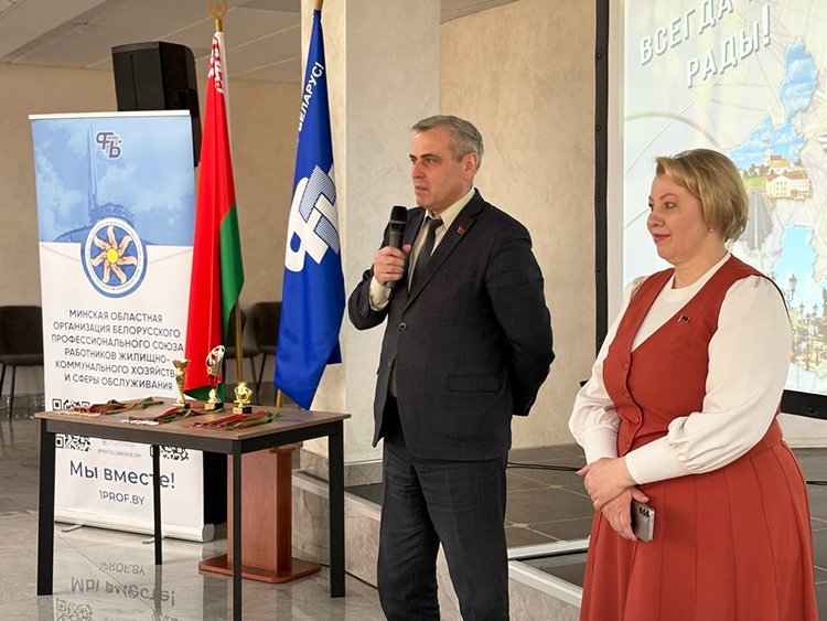 В торжественном открытии приняли участие председатель Минской областной организации профсоюза Владимир Гуринович и заместитель генерального директора по идеологической и организационно-правовой работе ГО «ЖКХ Минской области» Людмила Шмарловская.